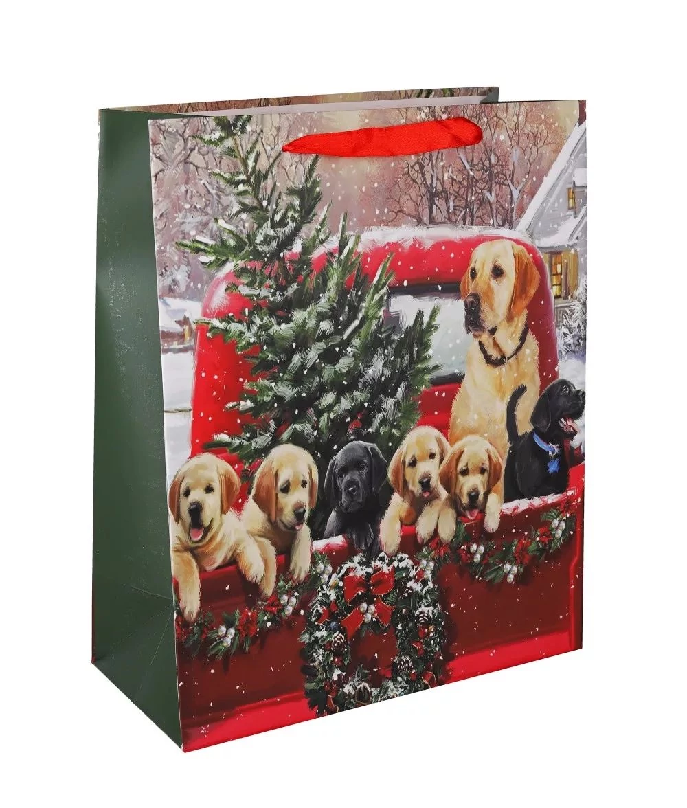 Karácsonyi papírtasak Kutyusok a furgonon L 26*32cm