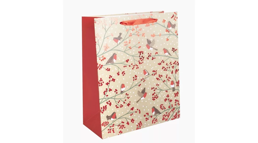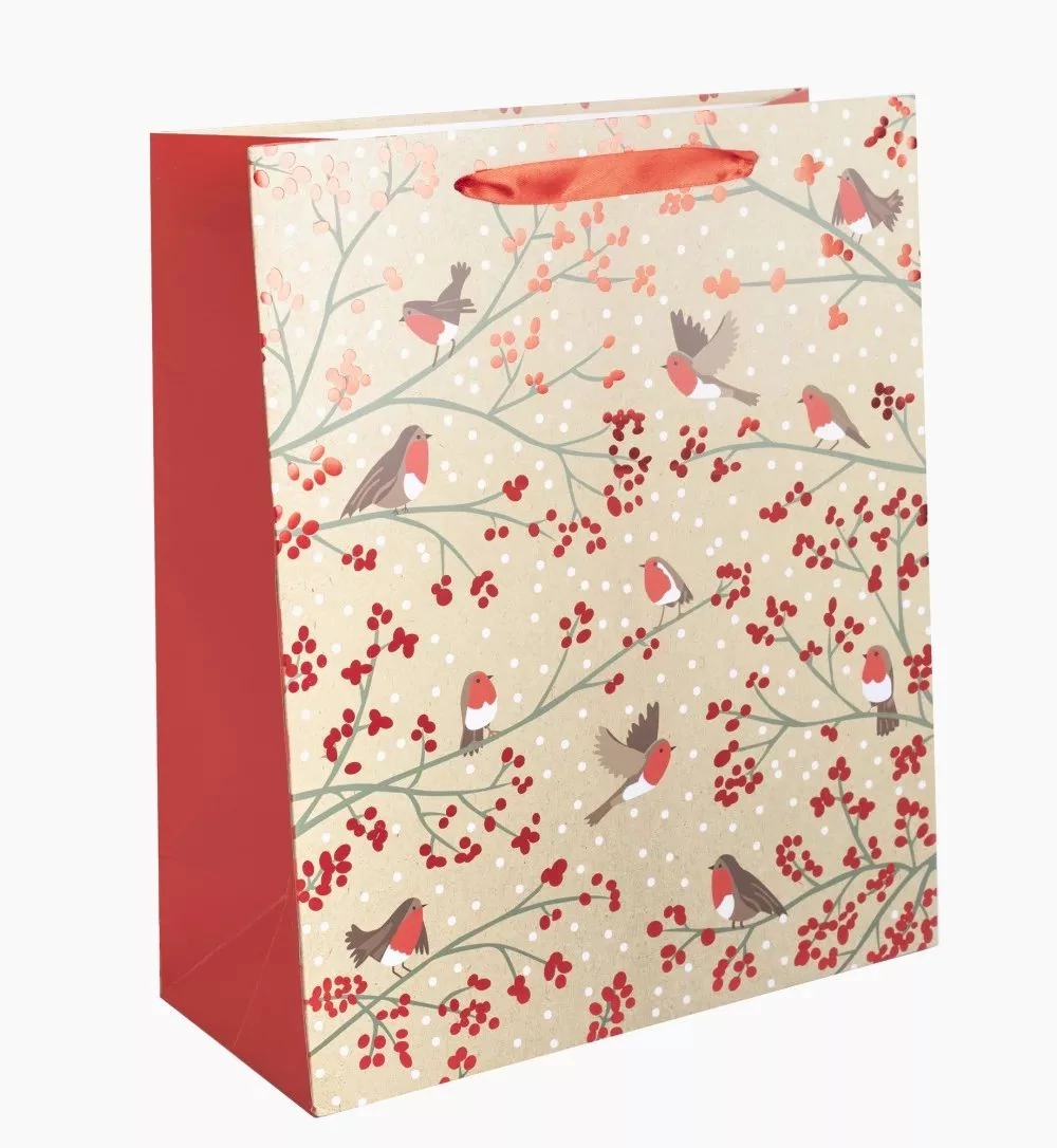 Karácsonyi papírtasak Madarak bogyós ágon L 26*32cm