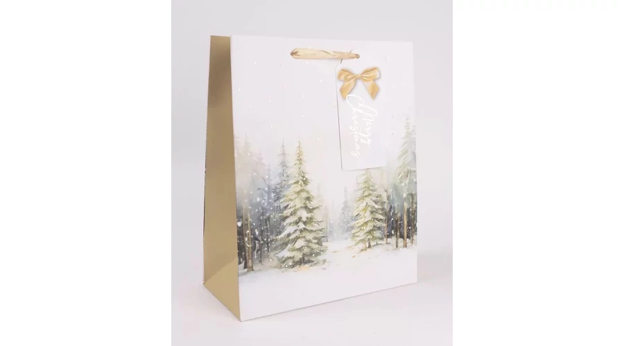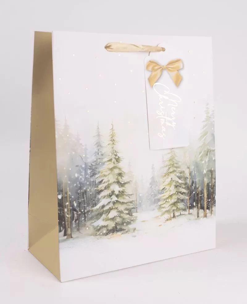 Karácsonyi papírtasak "Merry Christmas" Havas fenyők S 11*14cm