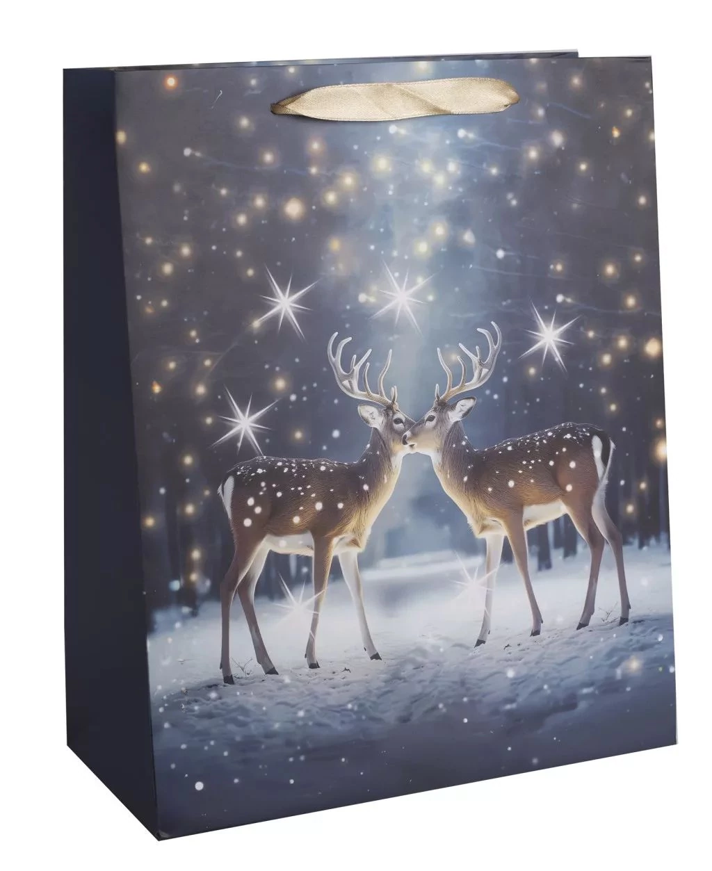 Karácsonyi papírtasak Rénszarvasok éjjel L 26*32cm