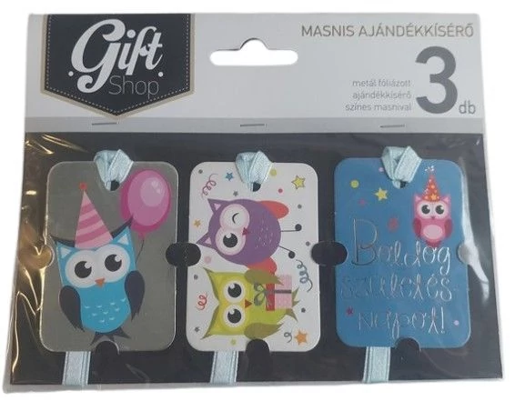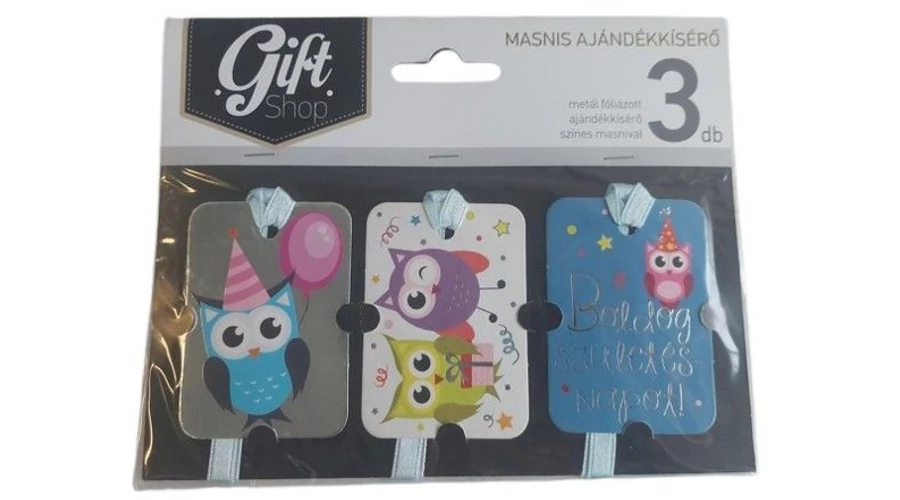 Masnis ajándékkísérő "Boldos születésnapot" baglyos 3db-os