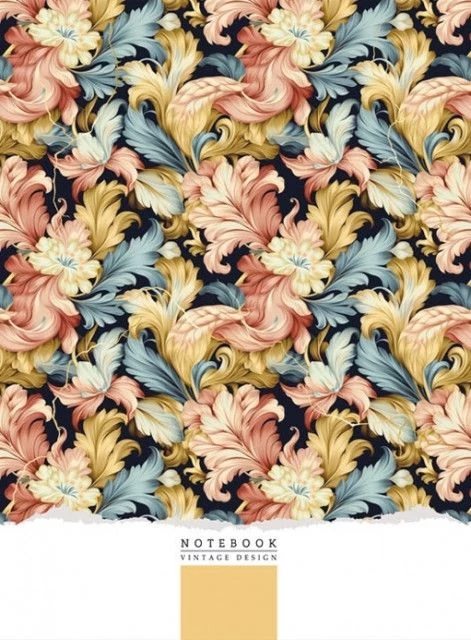 Notesz vonalas 145*197mm 64lap Vintage design Rózsaszín, kék szirmok
