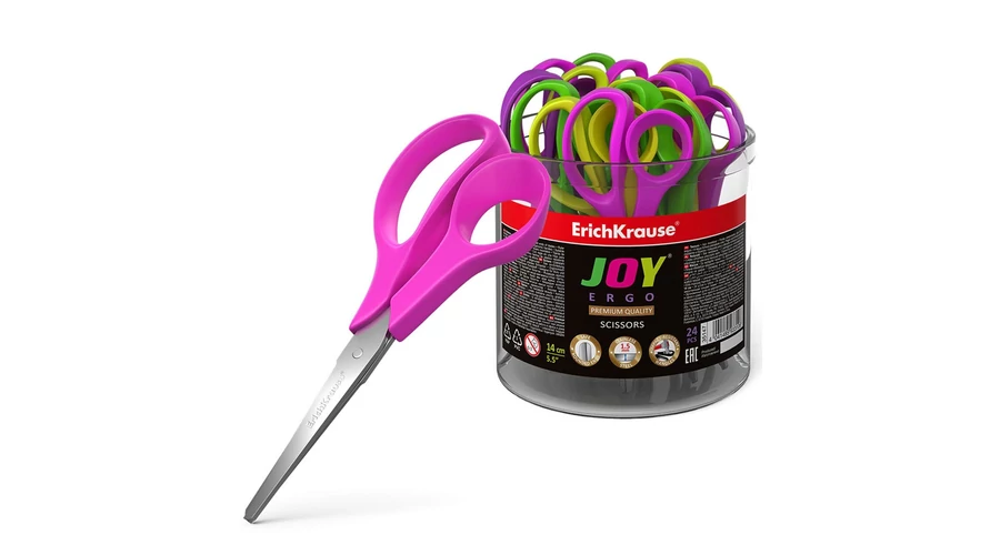 Olló kiváló minőségű rozsdamentes acél pengékkel és biztonságos, lekerekített végekkel. A pengéken lévő vonalzó biztosítja a precíz vágást. Korrózióálló. Ergonomikus formájú nyél ütésálló műanyagból.