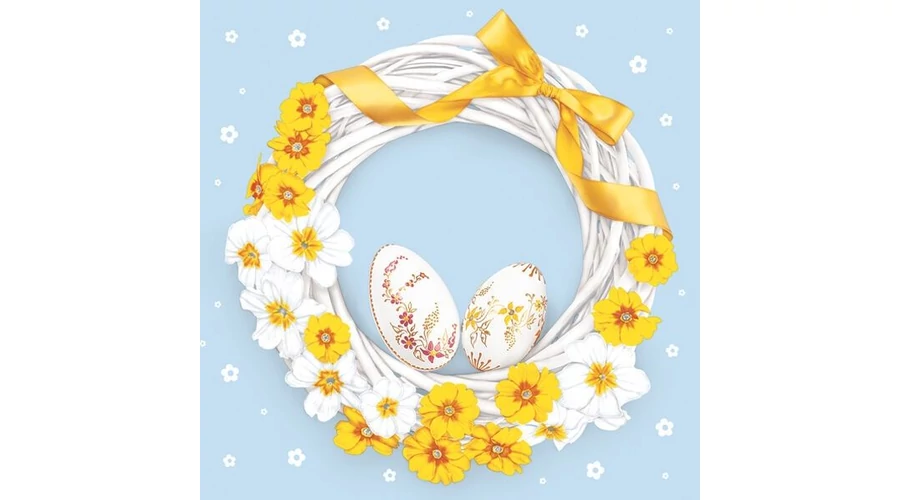 Papírszalvéta mintás Daisy 33*33cm Húsvéti koszorú kék háttérrel