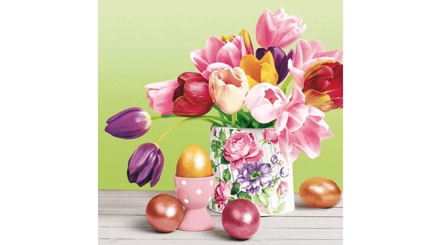 Papírszalvéta mintás Daisy 33*33cm Húsvéti tulipán csokor tojásokkal