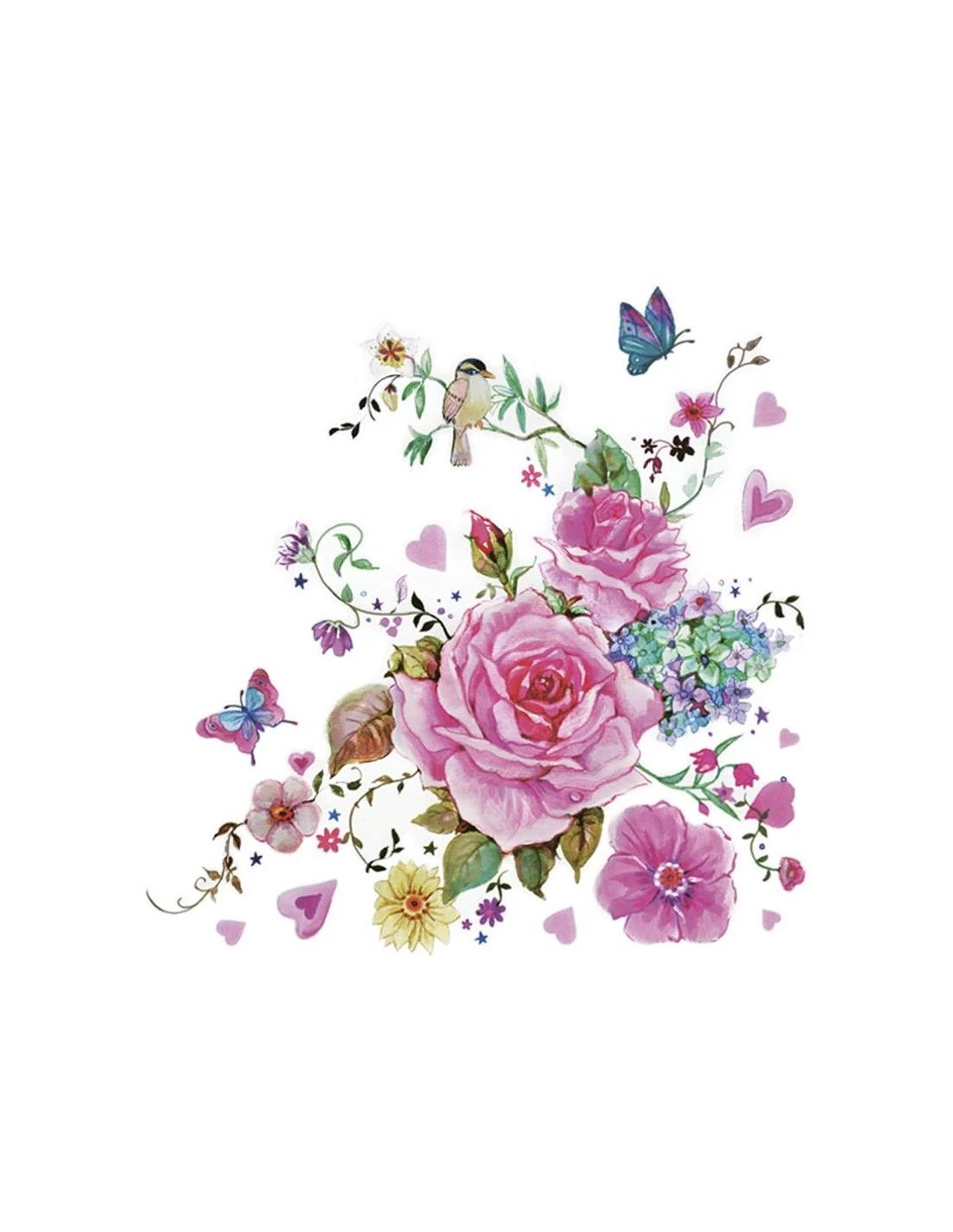 Papírszalvéta mintás Daisy 33*33cm Rózsák pillangóval