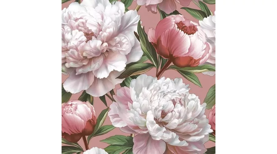 Papírszalvéta mintás Maki 33*33cm Bazsarózsák rózsaszín alapon