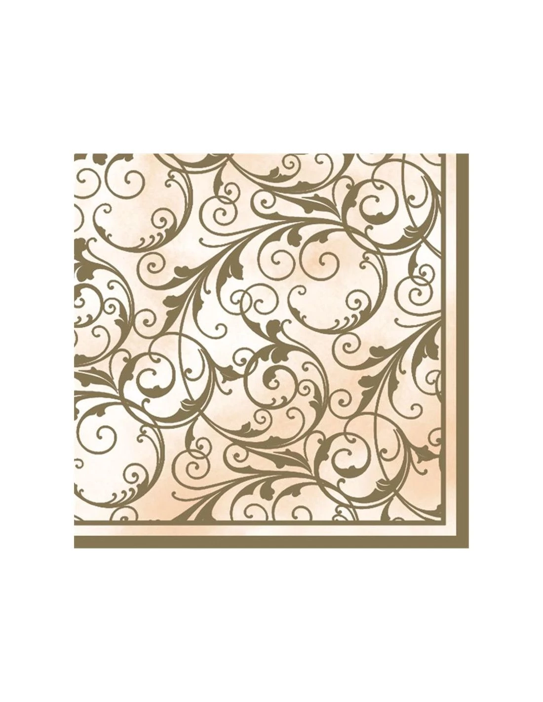 Papírszalvéta mintás Maki 33*33cm Krém szín, arany indákkal