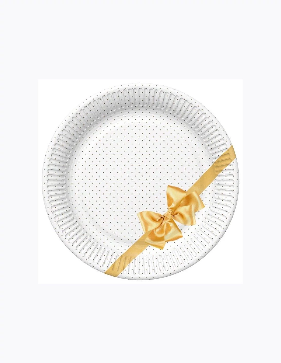 Papírtányér 22,7cm 8db Arany masnis pöttyös