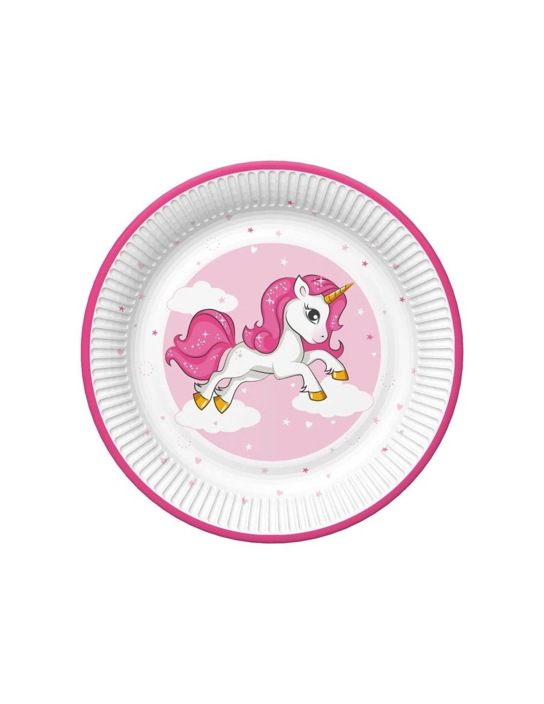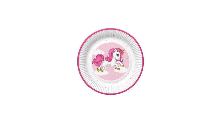 Papírtányér 22,7cm 8db Rózsaszín szíves unikornis