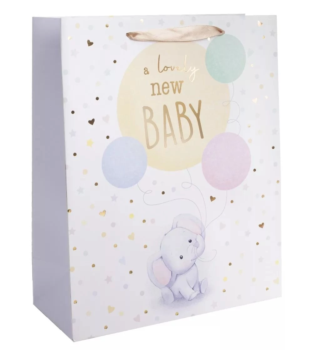 Papírtasak "A lovely new Baby" elefántos L 26*32cm