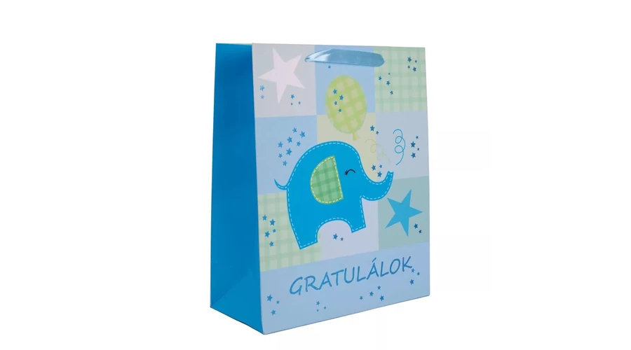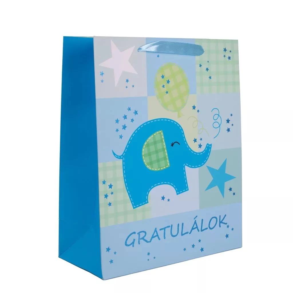 Papírtasak "Gratulálok" Kék elefánt L 26*32cm