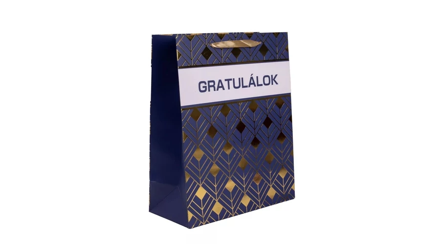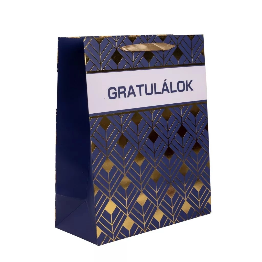 Papírtasak "Gratulálok" Kék, fényes arany nyomattal L 26*32