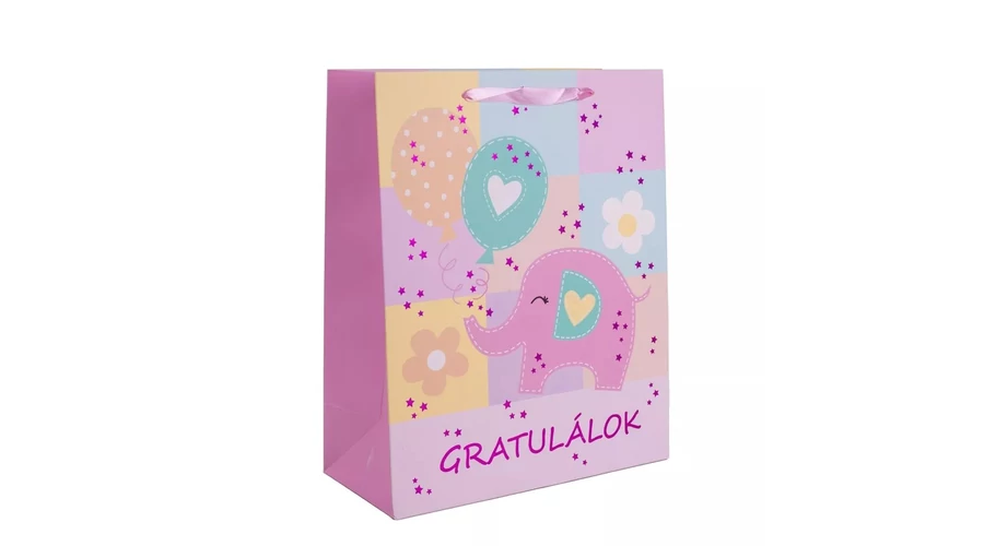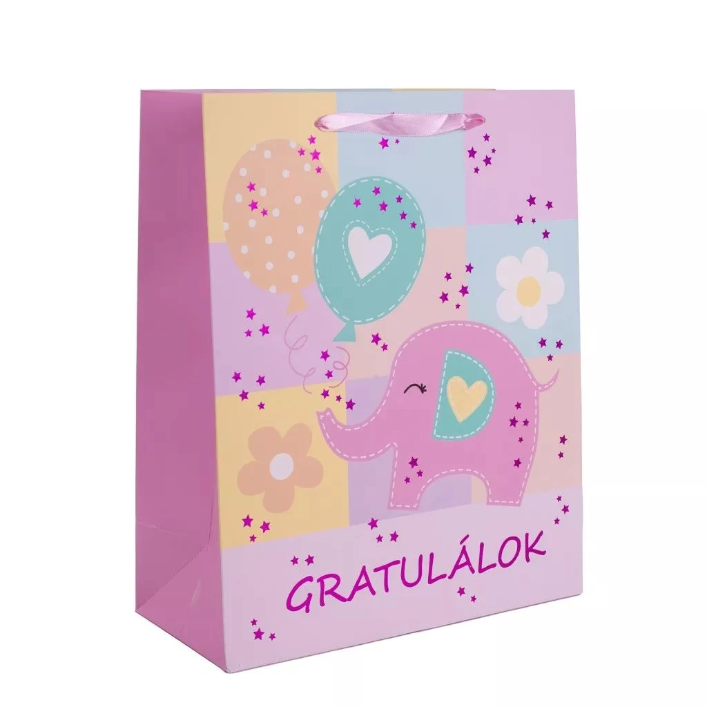 Papírtasak "Gratulálok" Rózsaszín elefánt L 26*32cm