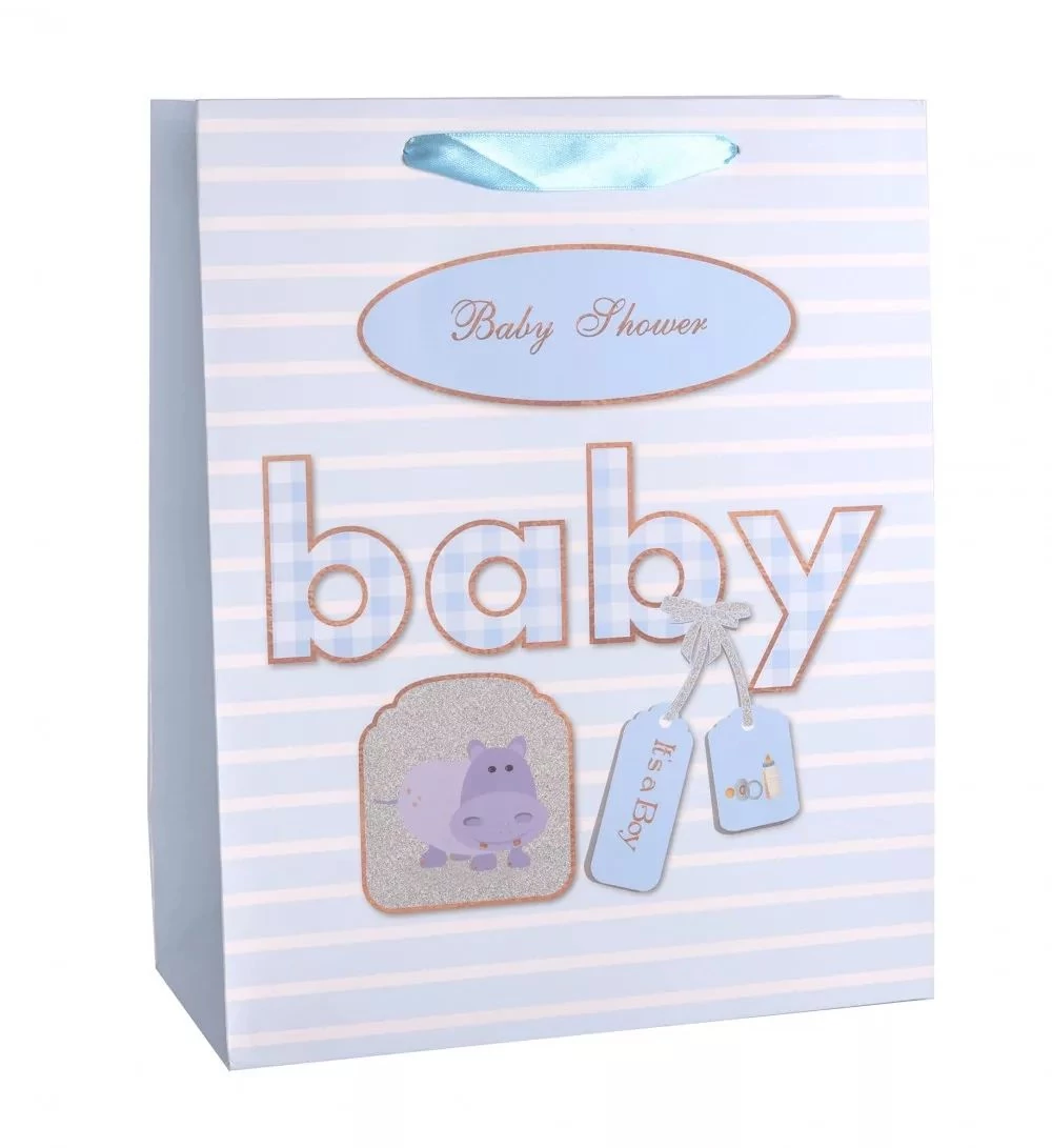 Papírtasak "It's a Boy" Kék vizilovas L 26*32cm