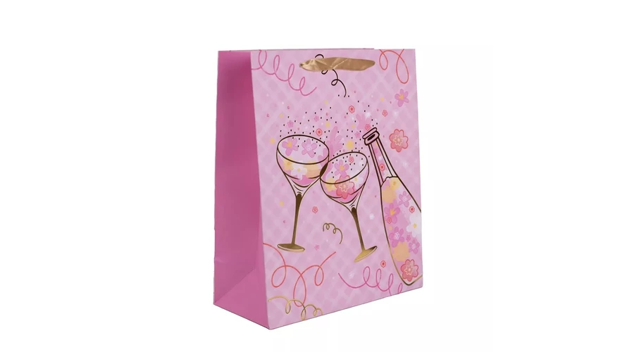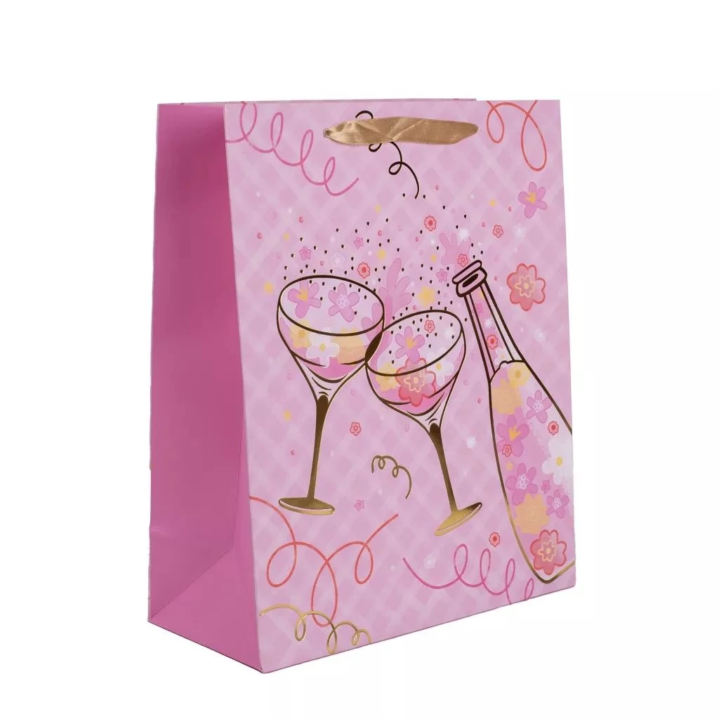 Papírtasak Rózsaszín, Fényes arany kontúros pezsgős M 18*23cm