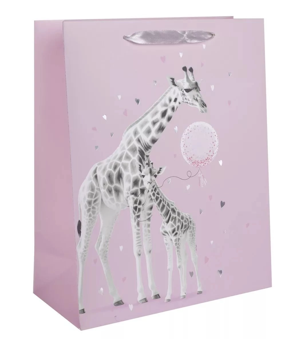 Papírtasak Rózsaszín zsiráfos L 26*32cm