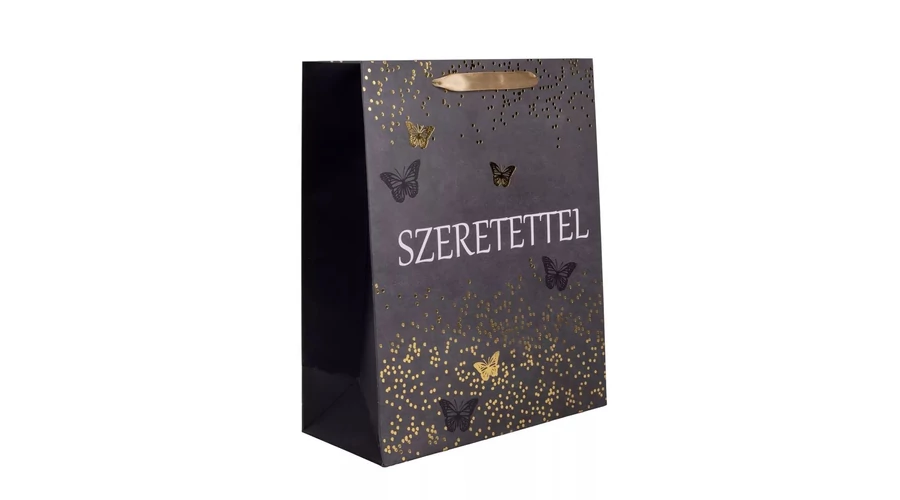 Papírtasak "Szeretettel" Fekete Arany pillangós L 26*32cm