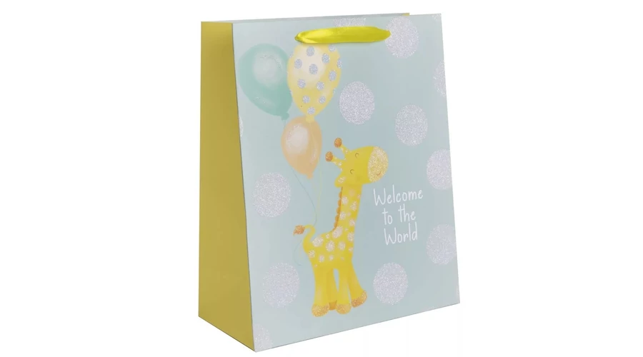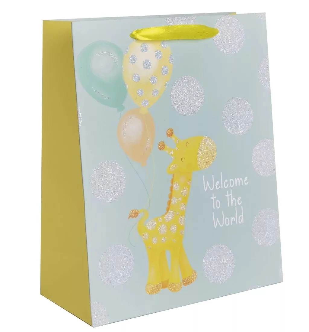 Papírtasak "Welcome to the World" Kék Glitteres Zsiráf L 26*32cm