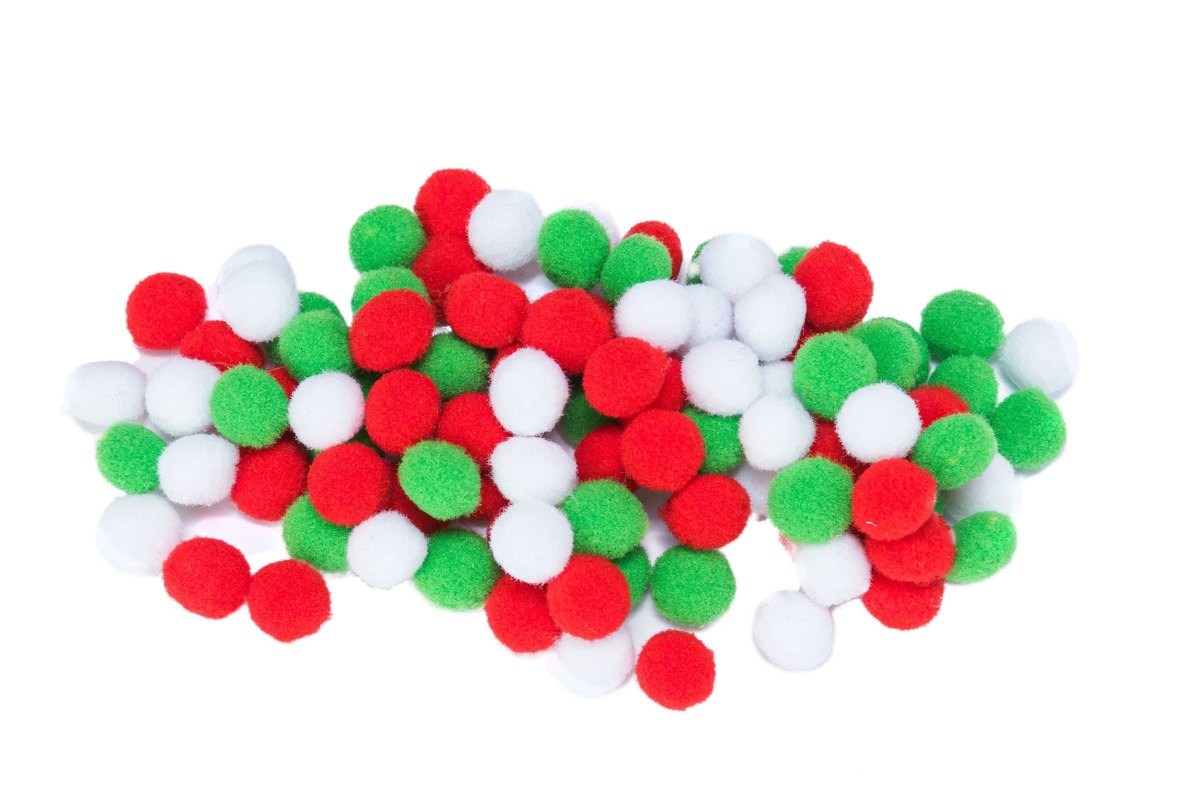 Pompon 10mm 100db-os Piros-Fehér-Zöld Mix