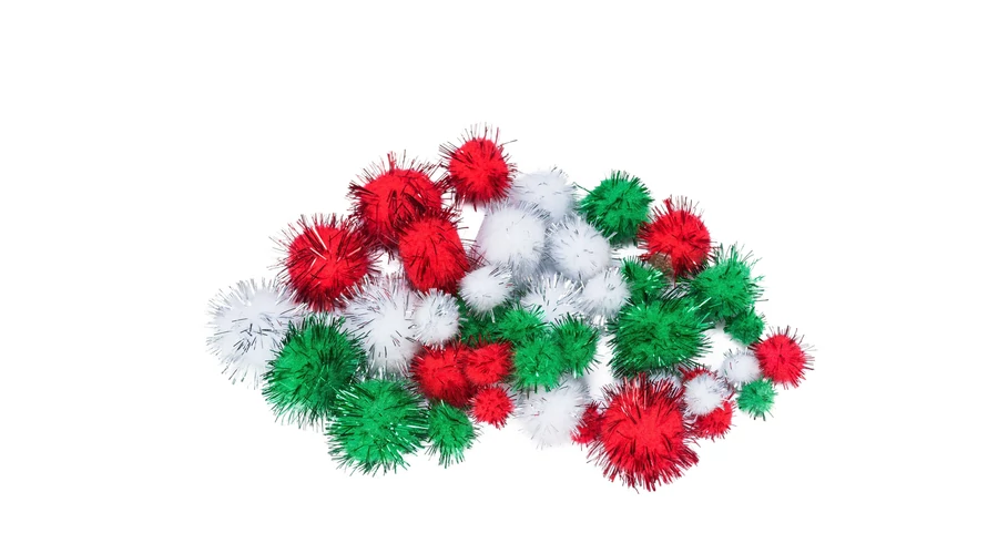 Pompon 40db-os vegyes méret Metál piros-fehér-zöld