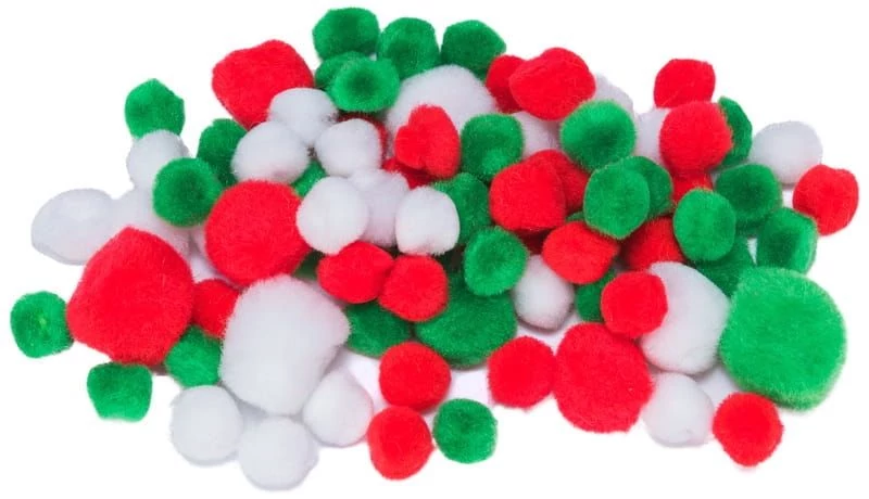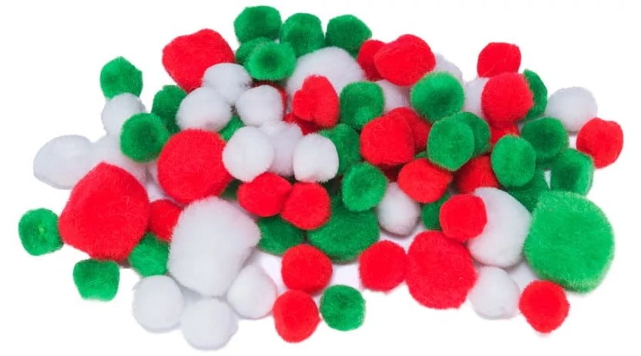 Pompon vegyes méret 78db-os Piros-Fehér-Zöld