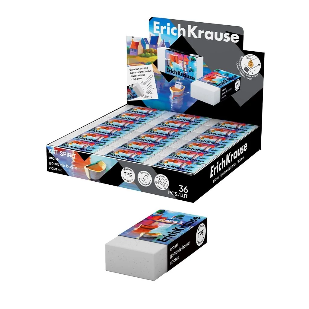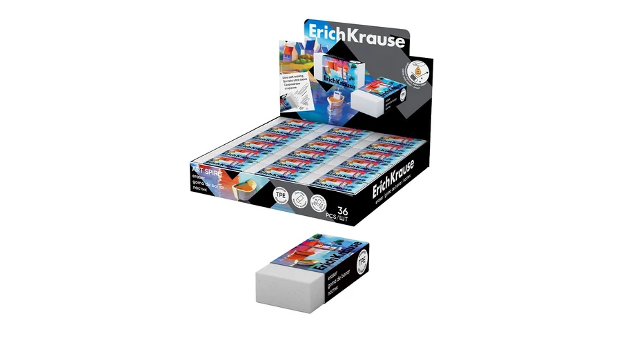 Ultrapuha, téglalap alakú radír modern hőre lágyuló elasztomerből (TPE). Pormentes. A radír nem hagy csíkokat a papíron, még akkor sem, ha olaj, zsíros cseppek vagy krém kerül rá. A radír kémiai összetétele nem tartalmaz PVC-t, latexet és ftalátot.