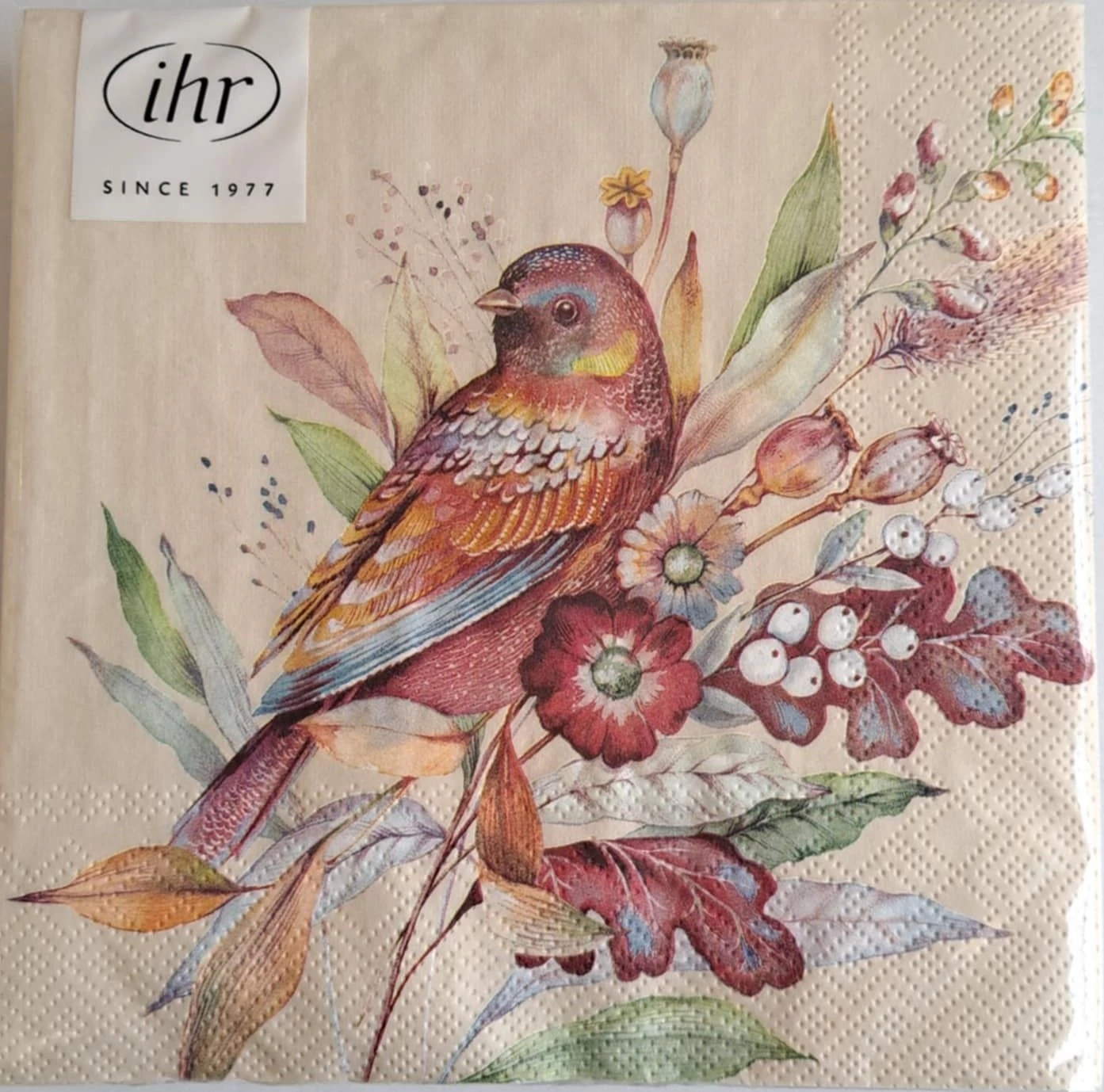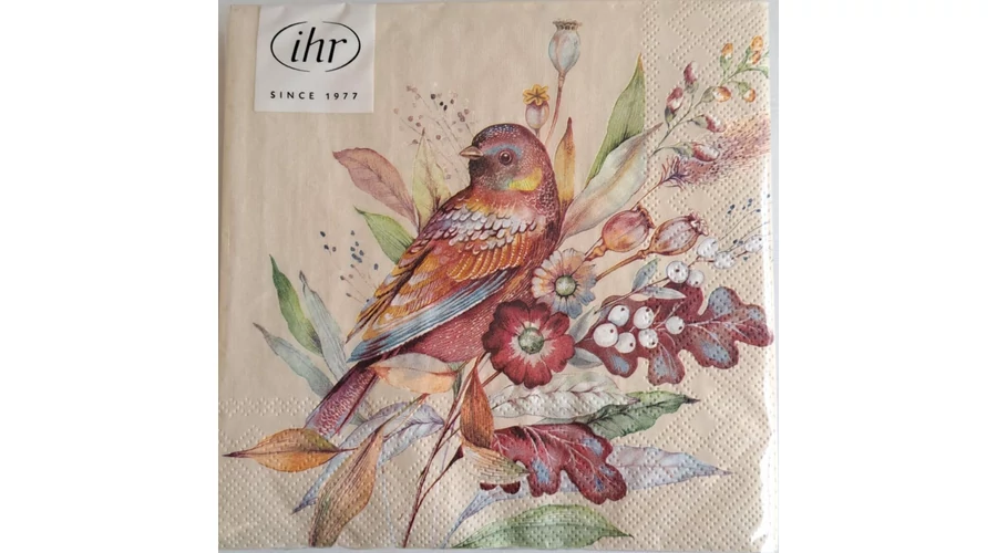 Szalvéta 33*33cm Autumn meadow bird Cream
