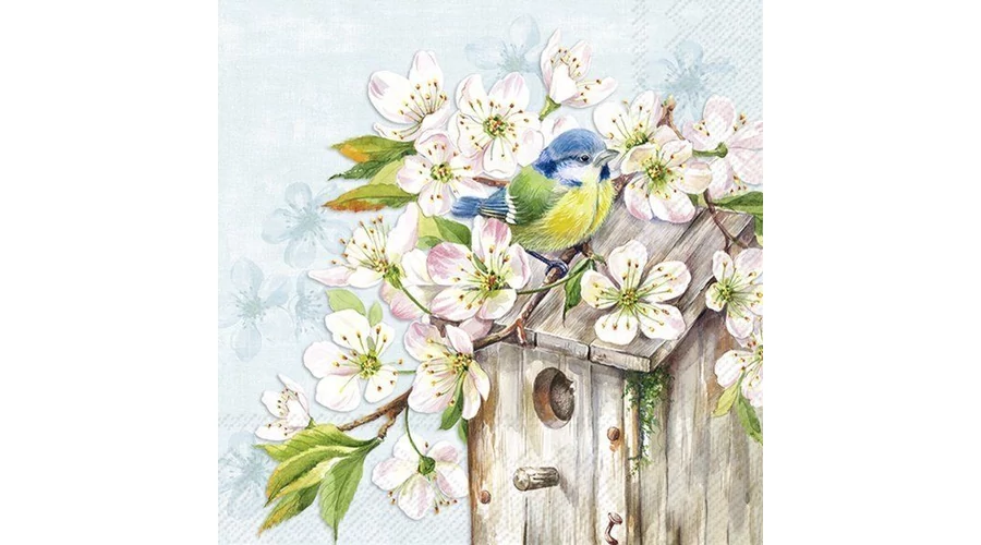 Szalvéta 33*33cm CHERRY BLOSSOM BIRDHOUSE l.blue
