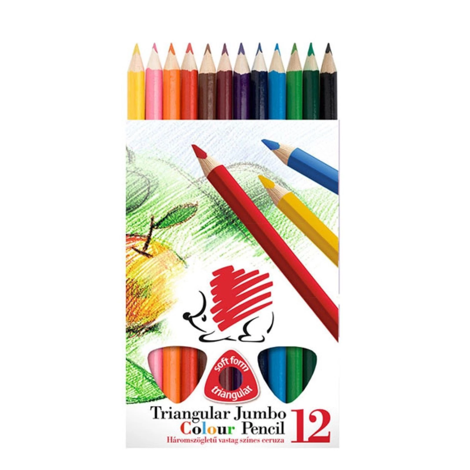 Háromszög alakú, előre hegyezett, vastag ceruza készlet. Ergonómikus kialakításának köszönhetően a kéz nem zsibbad el rajzolás közben. Lakkozott ceruzatest.