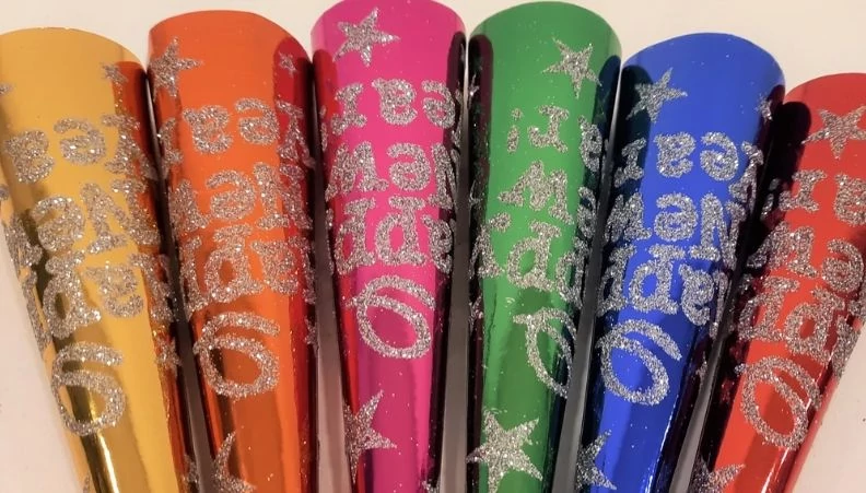 Trombita kicsi Happy New Year Glitteres (több szín)