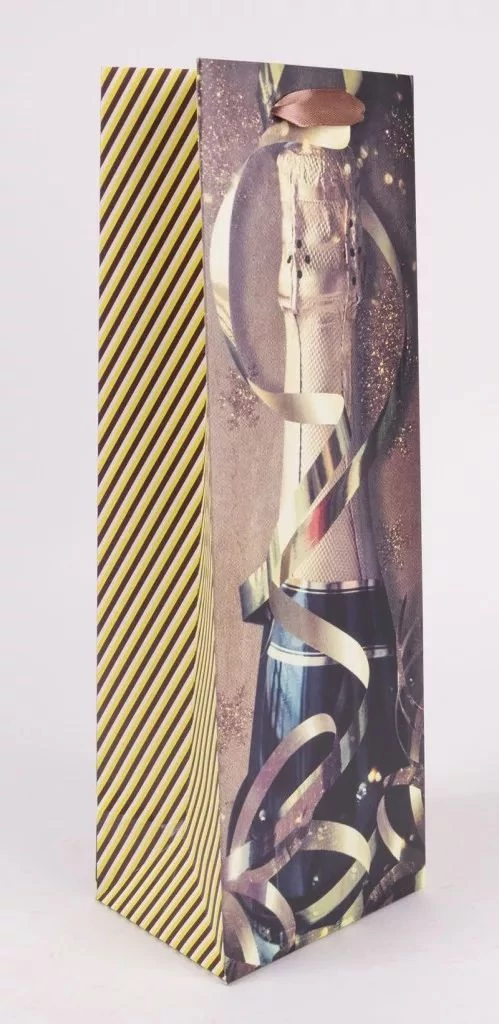 Papírtasak Pezsgős üveg arany szalaggal B 12*36cm
