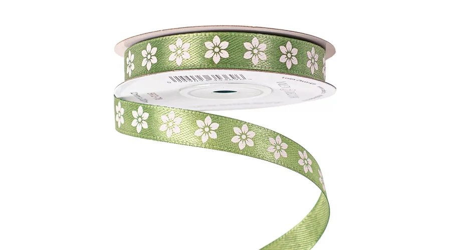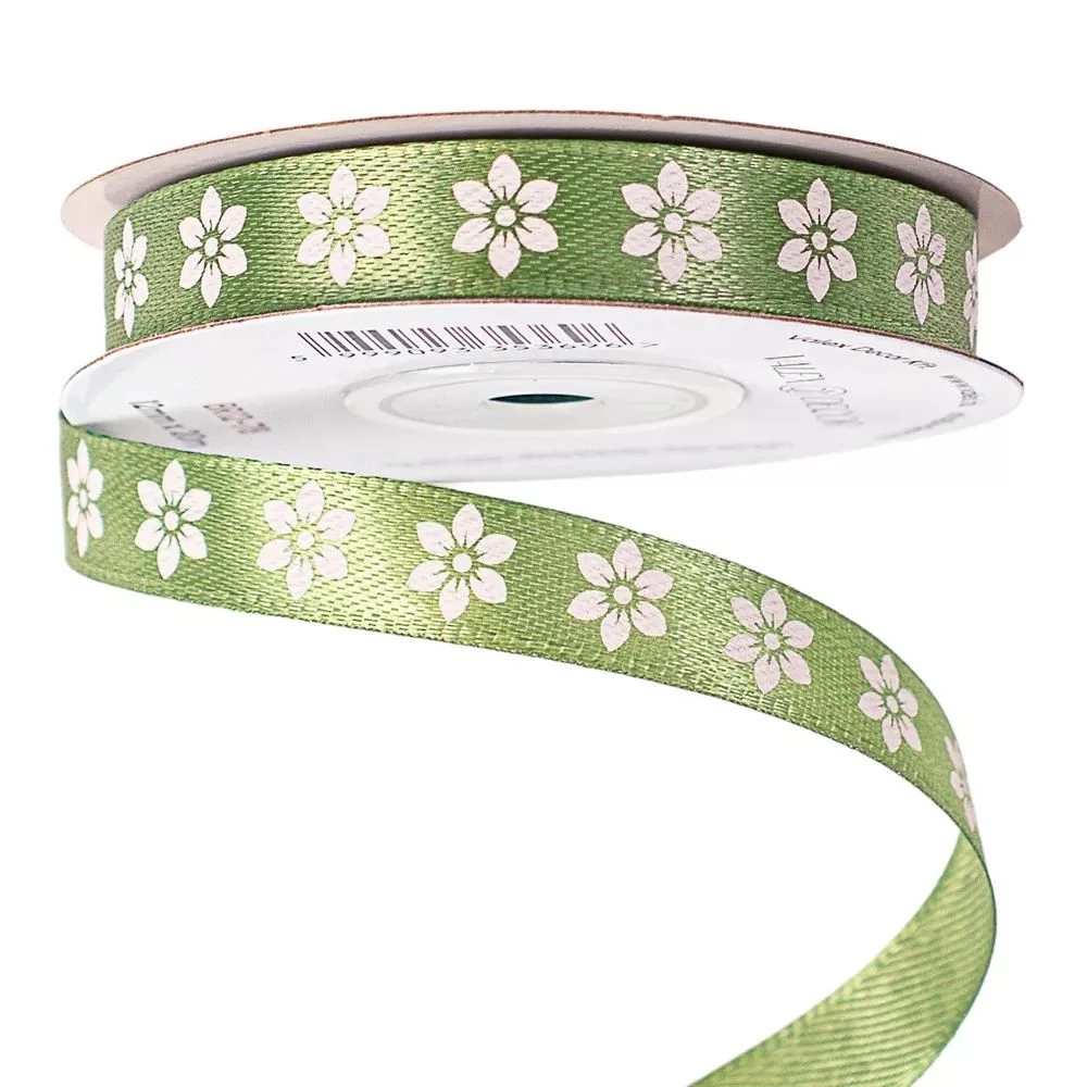 Virágmintás szatén szalag 12mm*20m - Mohazöld