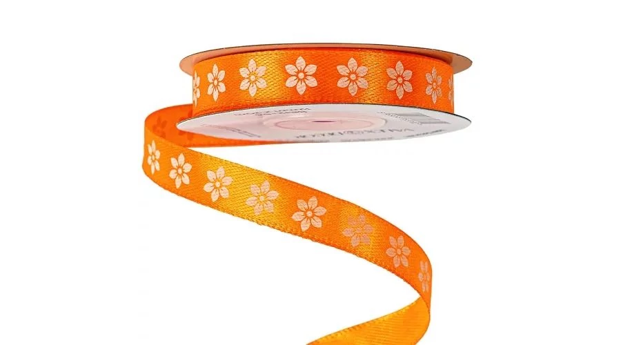 Virágmintás szatén szalag 12mm*20m - Sötét narancs