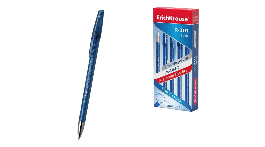 Zselés toll radírozható tintával, standard heggyel és cserélhető tollbetéttel. A toll félig átlátszó, színezett, kerek, csillogó hatású testtel, kényelmes, profilált markolattal és radírral rendelkezik. A hegy 0,5 mm-es golyóátmérőjű, gyorsan száradó zselés tintával kombinálva könnyű, pontos és gyors írást biztosít. A folyamatos vonalhossz 200 m, 0,4 mm-es vonalszélességgel.